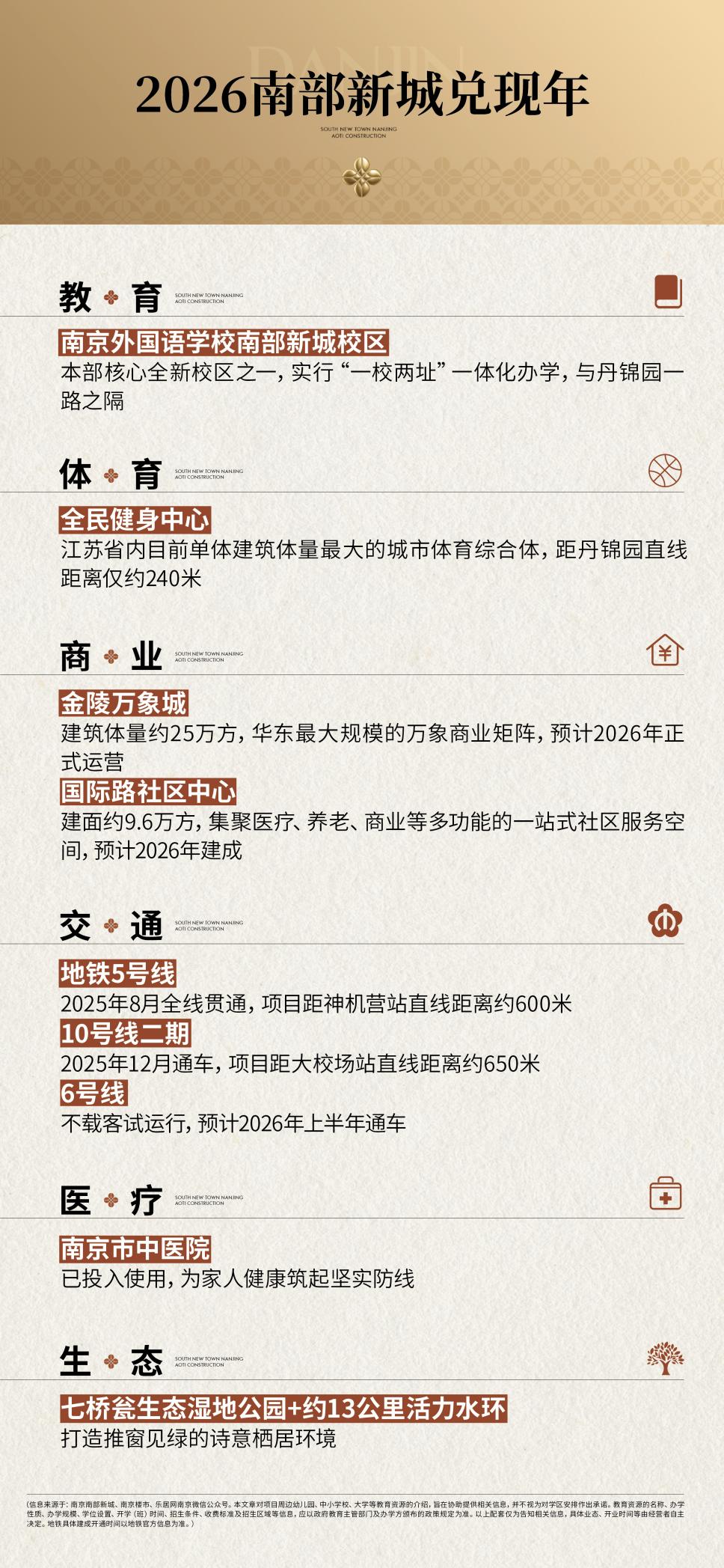 这儿形成了“向东预留潜力、向西接受老练”的黄金格式:向东约1平方公里预留白地,为区域开展保留了足够的幻想空间;向西则无缝联接整个南部新城,坐享一切老练配套资源。四轴资源围合的先天优势,更让这儿成为朴实的低密宜居高地,成为南京改进客群的一致之选。