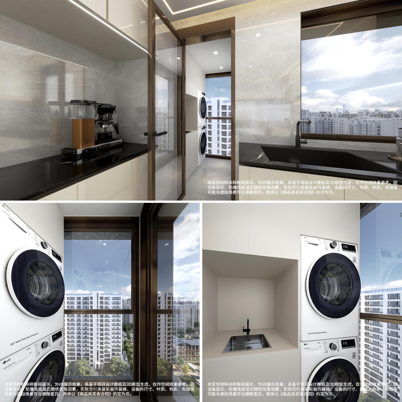 独立家政间的装备可谓点睛之笔,作为建面约200㎡以上豪宅才有的越级装备,丹锦园不仅为建面约129㎡户型标配该功用区,更完成双面采光规划,将洗衣、收纳等家务功用会集整合,让日子有条不紊。